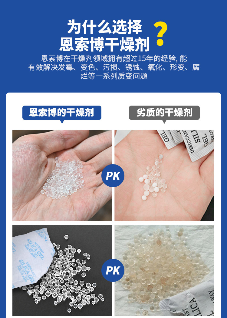 高效吸濕:硅膠干燥劑迅速吸收空氣中的水分,確保環(huán)境干燥。